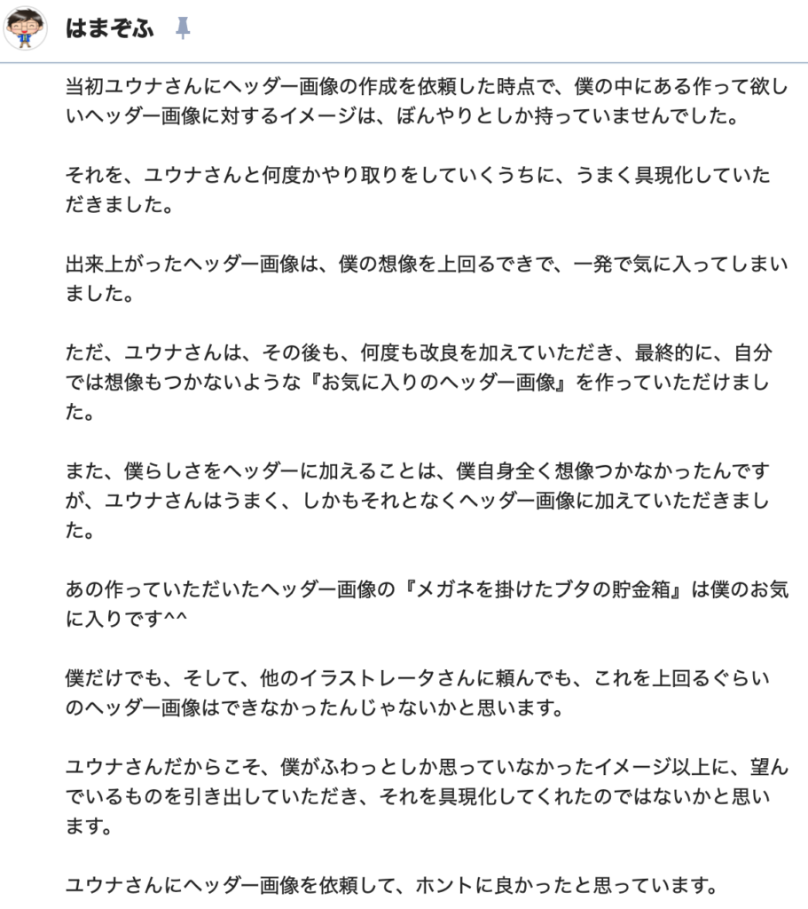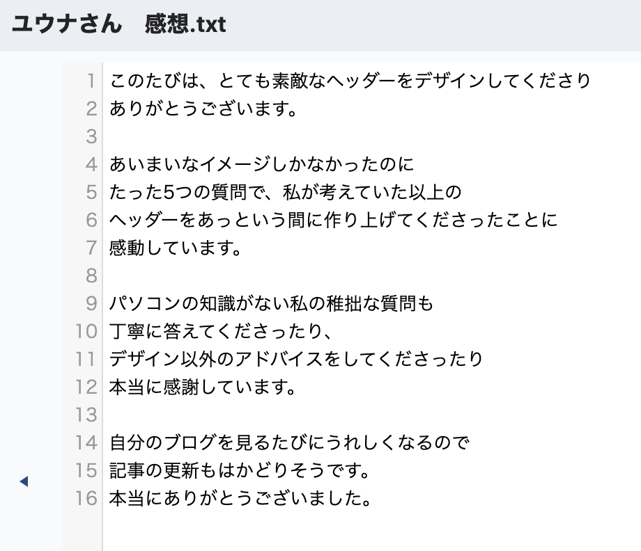ご感想をくださった方々のヘッダー画像は、実績としてページ上部に載せております。